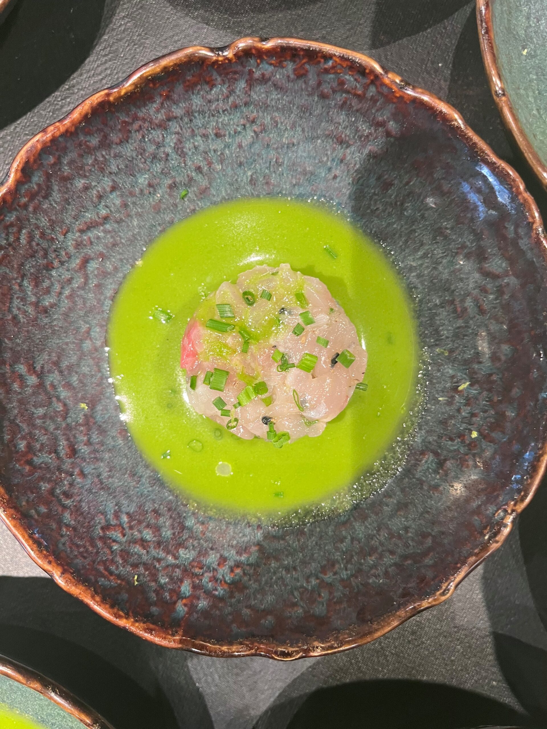 6 Huîtres du Cotentin pleine mer N°2 Tataki de thon, mousse de betteraves aux saveurs d’Asie, condiments Tomates et mozzarella di Bufala et pistou